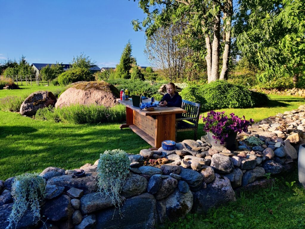 Tõsine katarsis tekkis alles oma kodu ümbruse esimese päris enda aiaga, mida sain luua omatahtsi ja algusest. Hiigelsuurt metsaäärset heinamaad hallata on väljakutse. Püüan teha seda, mis on siin olemuslikult ette antud – taastasime vanad kiviaiad ja keerasime kivikangrus õigetpidi lohukivi. Aiastsenaariumisse olid juba ette kirjutatud suur kiviktaimla, kaks vana pihlakat, kõrge mets idas-kagus ja suured puud krundi sissesõidul. Kadakaid alguses ei olnud, need tõin saja meetri raadiusest. Kõik muu on loodud ümber selle loomulikkust ja looduslähedust silmas pidades. Olemasolev ebatasane maapind on tänu robotniidukile saanud ühtlase tiheda murukamara peaaegu muruseemet kasutamata. Naudin seda rohelist sametist lainetust, mis tuleb kaunilt esile, kui päike loojub. Metsikud alad ja niitmata lapid hoian alles, et liiga äratehtuks ei läheks.