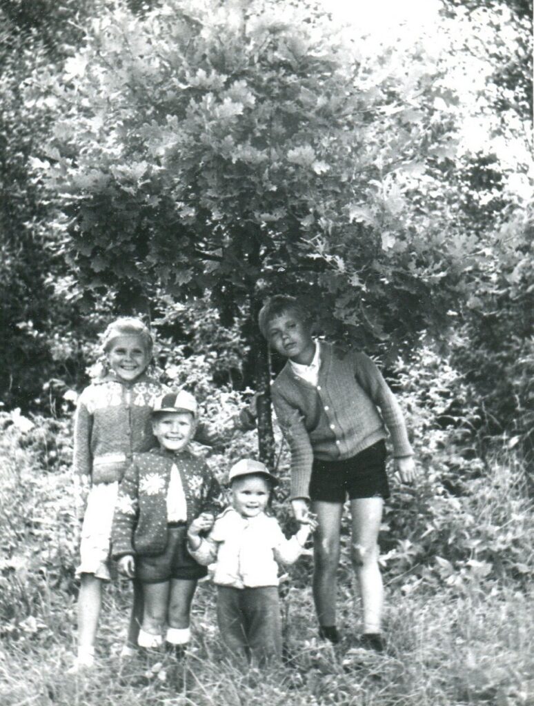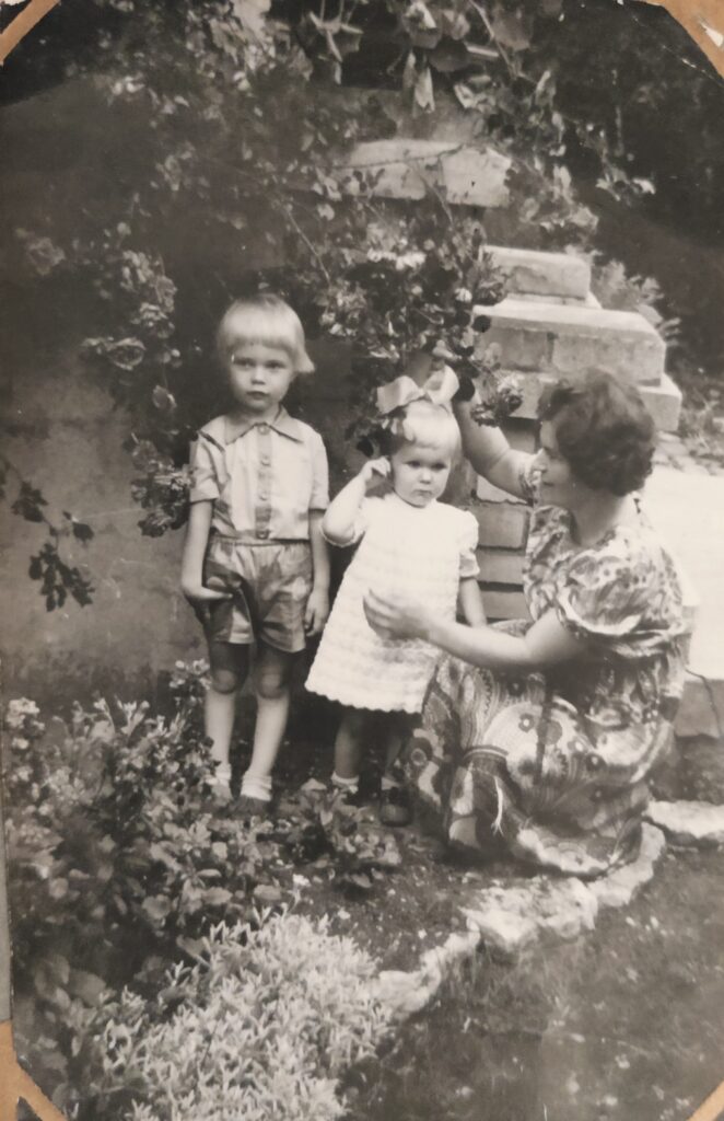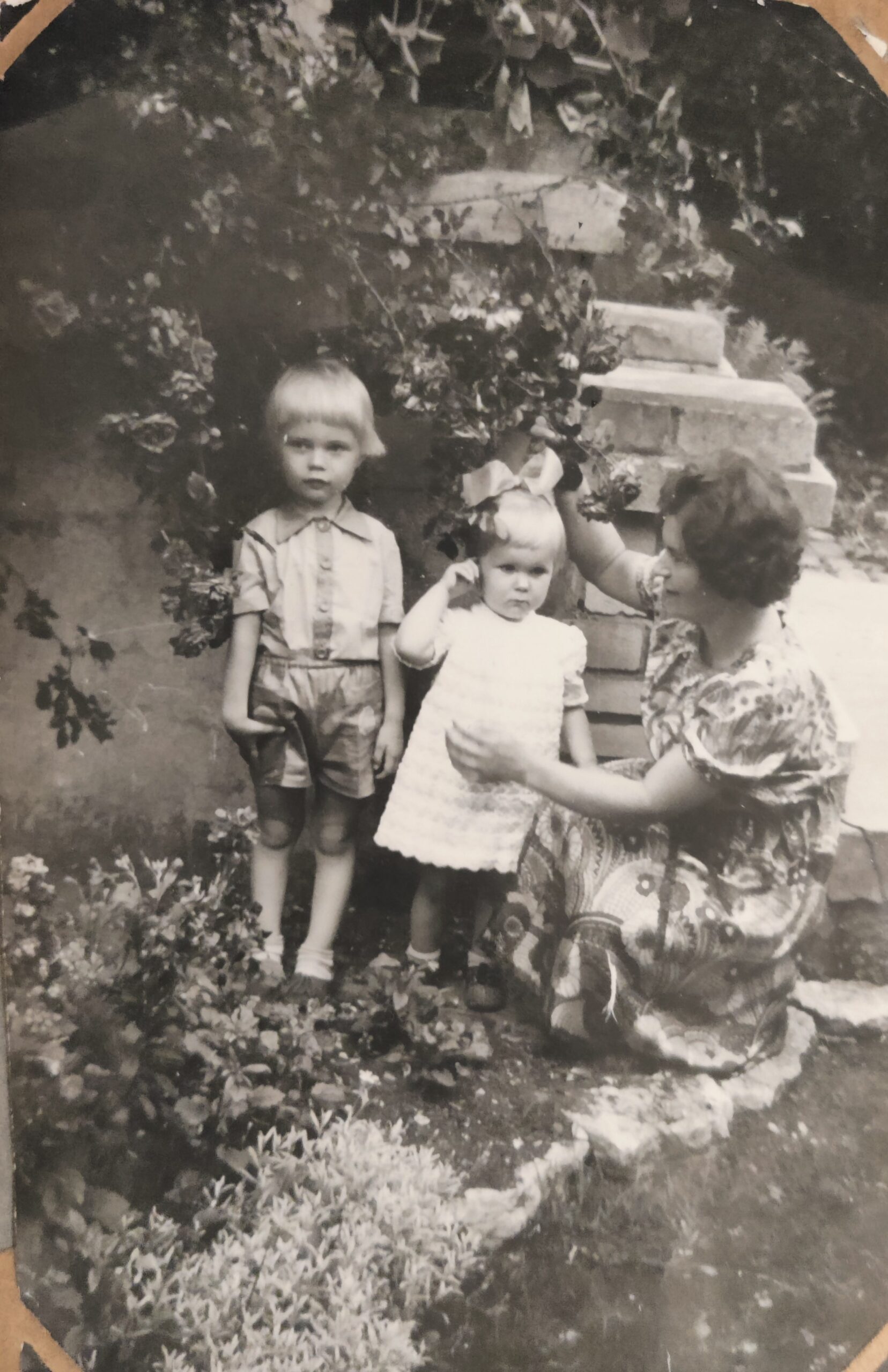 Traditsioone oli veelgi – ikka pildistati lapsi mõne puu või roosipõõsa taustal, et kuidas ühed või teised pikkust viskavad. Laste- või aiapidamine on kõik üks ja seesama – kastmine ja väetamine! Järgmistel piltidel on põlvkond vahetunud aga puu on sama (piltide vahe ca 40 aastat) ja samast juurest võetud roniroos.