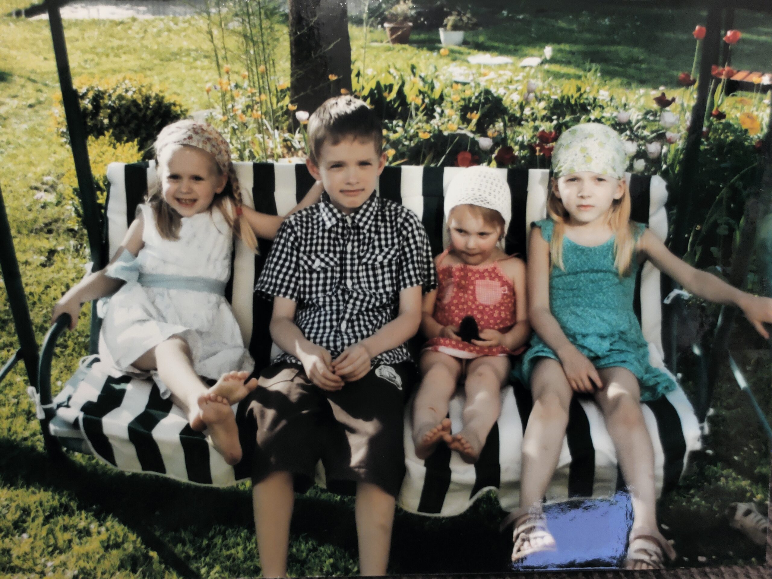 Järgmistel piltidel on kaks erinevat põlvkonda lapsi aias istumas – slaidid aastast 1978 ja fotod sellest sajandist. Esimesed pildid on kartulivõtu-seltsielust. Ei mäleta, kas me kartuleid ka võtsime või poosetasime niisama.