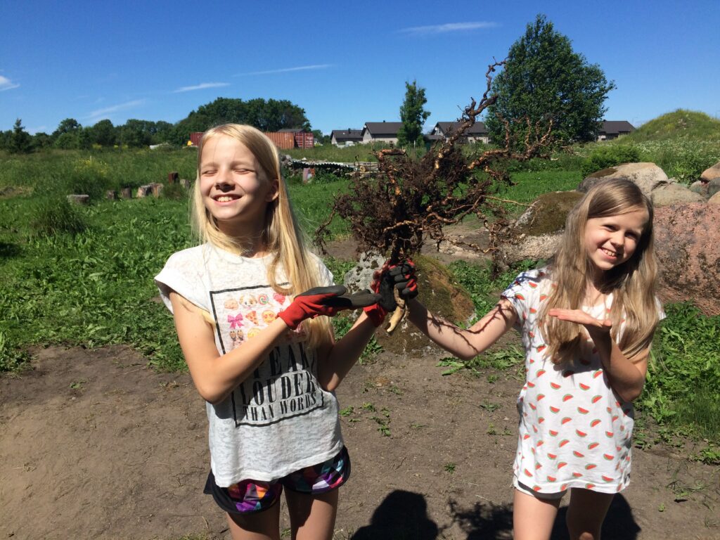 Piltidel on meie suvila hiiglaslikud herned aastal 2008, õunamahla tegemine umbes 5 aastat hiljem ja veidi veel hilisem uue maja ümbrusesse uudismaa tegemine, millest võtsid osa ka lapsed.