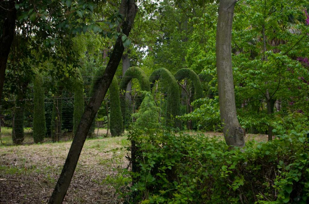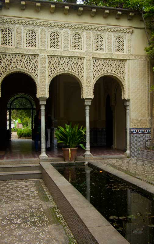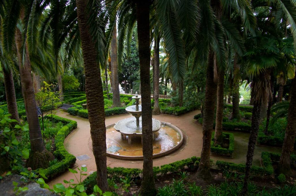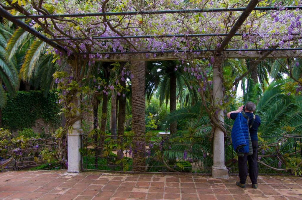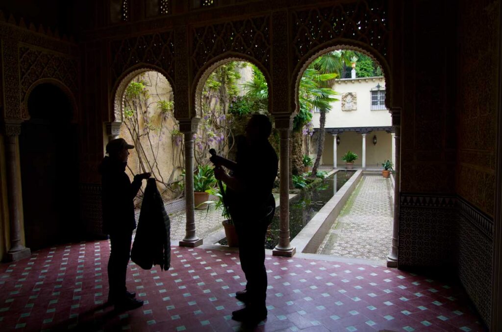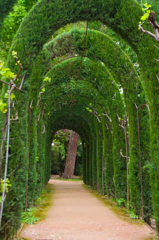 On aprillikuu, mis Andaluusias imekaunis juudapuude õitsemise aeg. Väravas tervitavad meid räuskavad paabulinnud. Edasi tuleb eluhoone, klassikaline mauri stiilis sisehoov – kaared, mosaiigid, madalad basseinid. Ümberkaudu mitmel tasandil terrassid, pügatud hekimustrid, purskkaevud, veekanalid, visteeriaõites pergolad. Aga barokkpargi ranguse asemel on siin veetlev mängulisus ja muinasjutu-õhkkond. Tuhat ja üks ööd. Sümmeetria saab lõhutud, loodus läheb sujuvalt üle arhitektuuriks (ja vastupidi), radu mööda edasi liikudes avanevad järjest uued vaated – aed on nagu seitsme looriga tantsijanna. Õitsevad kallad ja iirised. Linn on kusagil kaugel all, silmapiir kaob vinesse. Aeg peatub.
