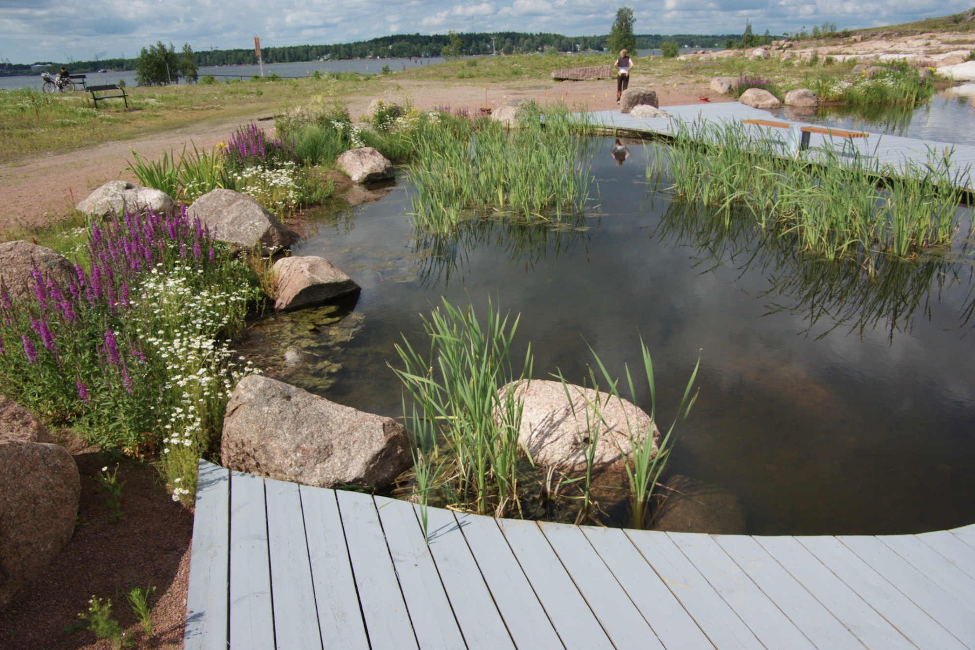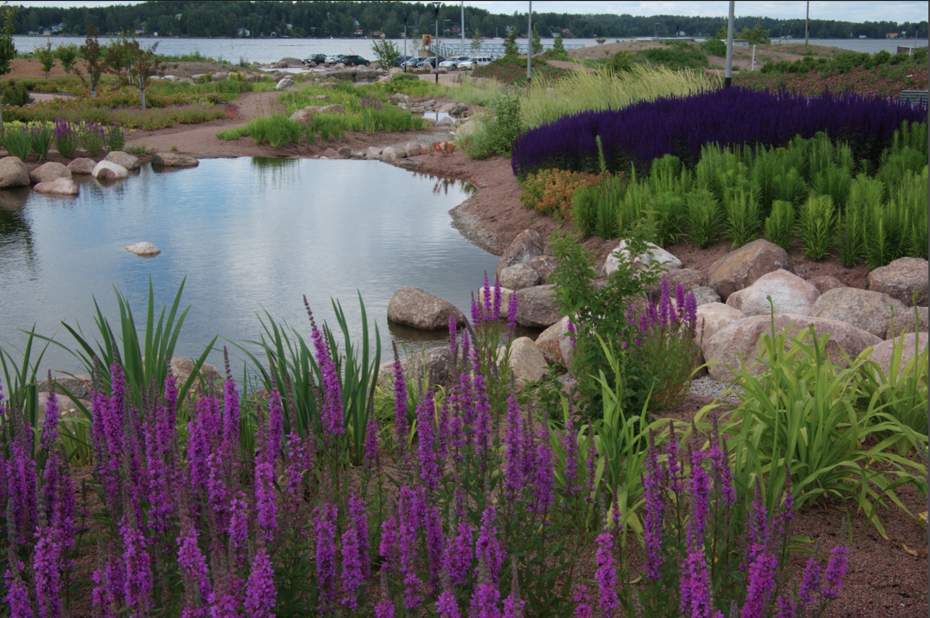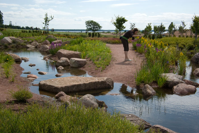Pargi rajamine algas 2004, kui pind sai naftajääkidest puhastatud, ning meie külaskäigu ajal oli kõik veel pisut toores, uus ja värske värvi hoiatussiltidega varustatud. Ka taimed alles alustasid kasvamist. Ent juba leidus veetlevaid vaateid ja kooslusi – selliseid, kus sa tükk aega vaatad ja nuputad, kas on nüüd tegu looduse või inimkäe loominguga. Vesi oli pandud ojakestes voolama ning roosa graniidiga ei olnud kokku hoitud; imeilusasti oli eksponeeritud ka kohalik kaljupank . Üle mere paistsid sadamakraanad ning tuuline ja mereline oli kogu paiga meeleolu.