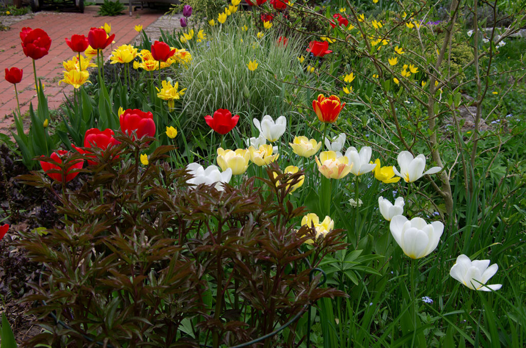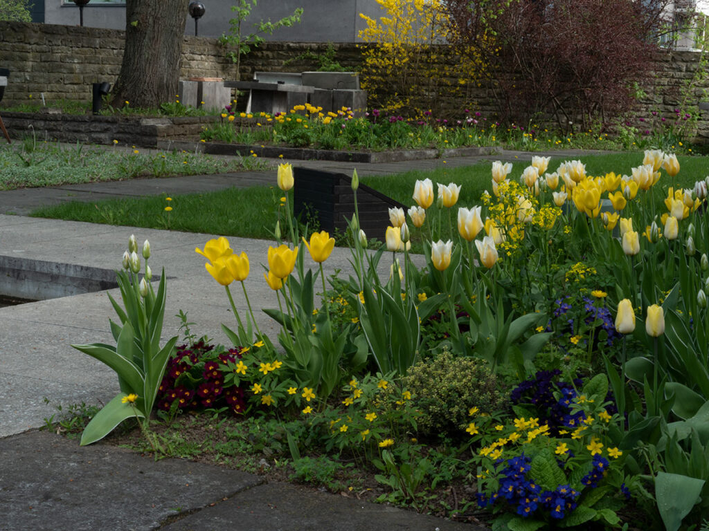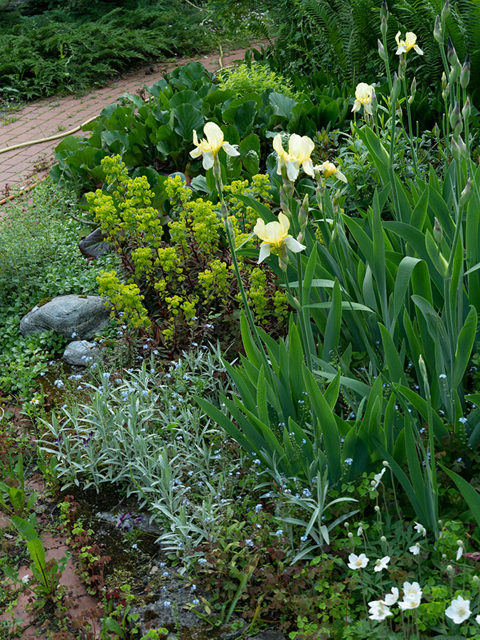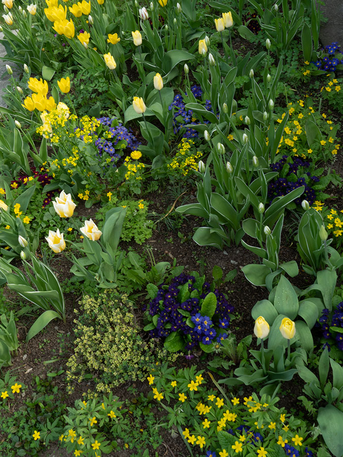 Vaatan oma aias ringi: priimula, raudrohi, kugarpea, iiris “flavescens”, madar, kortsleht, piimalill, kirss-kontpuu, santoliin – viksid ja viisakad lilled, kes igat olengut oma tagasihoidliku sarmiga täiendavad. Võrdluseks mõned suurt ja eredat värvilaiku moodustavad diivad: forsüütia, kollane rodo, päevakübar – need nõuavad juba hoolega valitud kaaslasi. Tihti aitavad neid kompositsiooni sulatada just eelnimetatud tagasihoidlikumad kollased.
