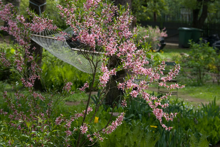 Minu aia kõige roosam hetk on juuli alguses, kui korraga lähevad lahti jaapani enelas, deutsia, veigela, hilised pojengid ja roosid, ning õnneks ei õitse samal ajal suurt midagi muud. Aga veel vingem roosa aed on minu emmel – sellest kunagi edaspidi.