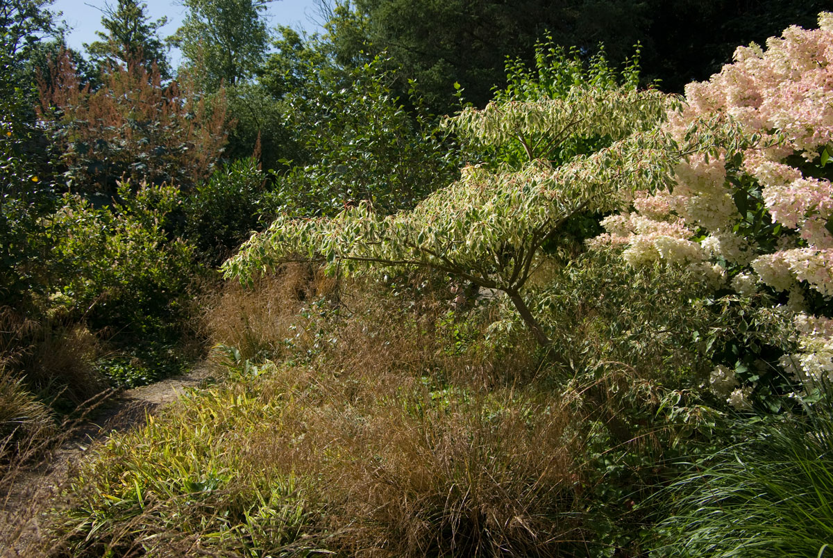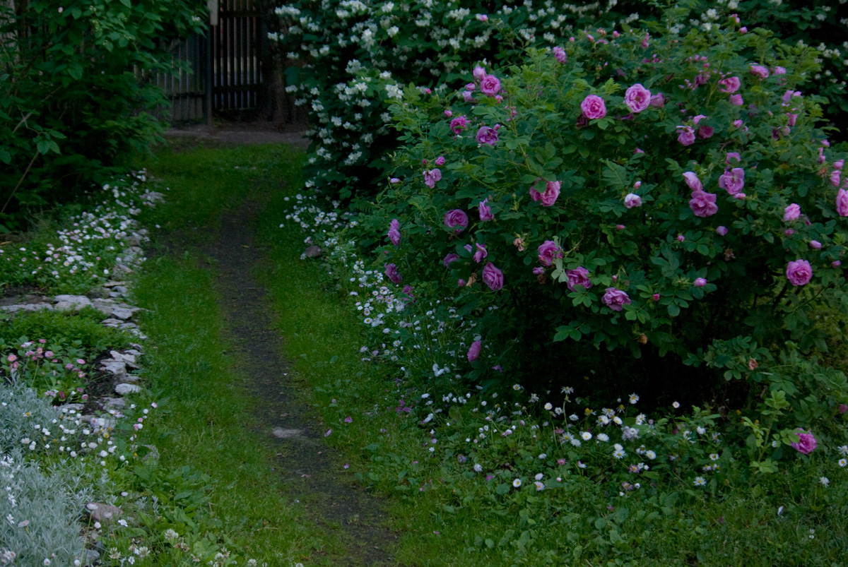 Roosa värv aias on täiuslik nagu end sabast hammustav madu. Külmema varjundiga roosa moodustab lehestiku rohelisega nii perfektse paari, et ei vaja (ega vahel ka salli) lisandiks mitte midagi – kui, siis sutsu laimirohelist või valget. Roosa on ümar nagu O-täht, pehme nagu pilveke, küps nagu kesksuvi.. Kehastunud tasakaal – ei kuum ega külm.